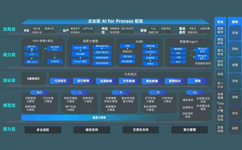 端到端的一站式AI工作空间深度融合了从企业战略规划到日常经营的全流程业务板块,,定向解决车企内部领域多、、、、部门多、、、、链条长、、场景碎片化等难题,,,支持车企快速构建以AI为核心的生产力写作体系,,,,实现任务执行与AI能力的无缝集成与交互